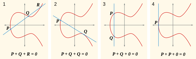 When adding points exactly above one another, we have to throw in our "zero" point at infinity. Yes, nomenclature sucks and folks really do write zero for infinity in this case.
